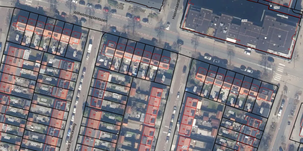 Gebruik de zoekbalk of klik op een perceel om informatie over het perceel te bekijken.
