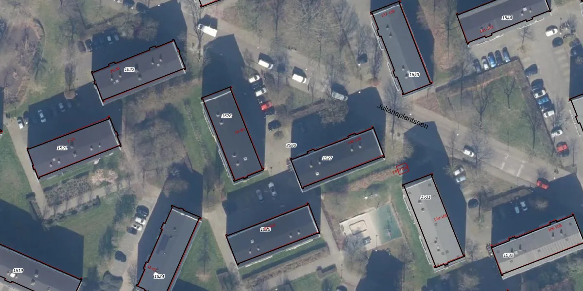 Gebruik de zoekbalk of klik op een perceel om informatie over het perceel te bekijken.