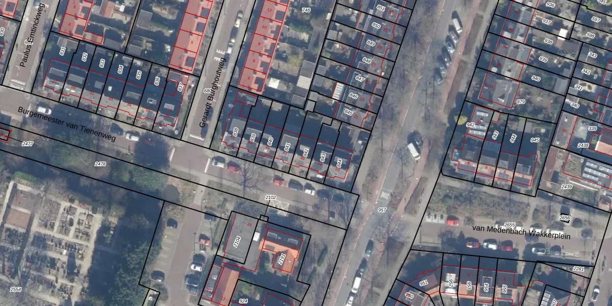 Gebruik de zoekbalk of klik op een perceel om informatie over het perceel te bekijken.