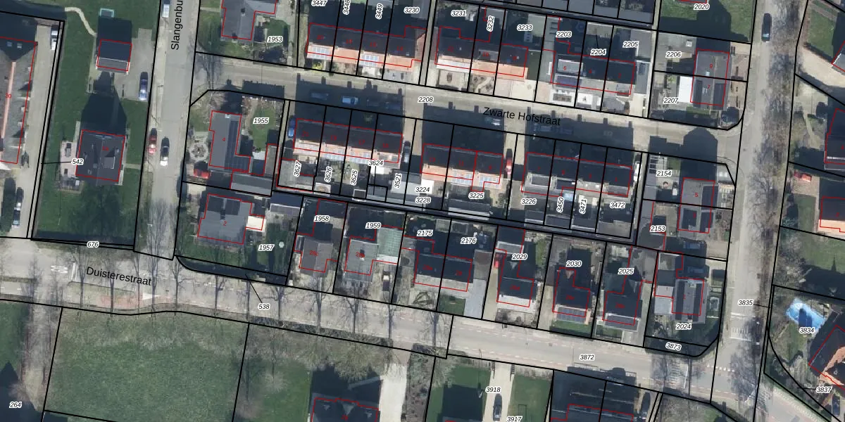 Gebruik de zoekbalk of klik op een perceel om informatie over het perceel te bekijken.