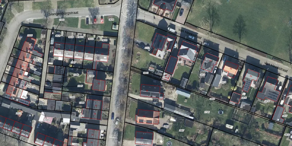 Gebruik de zoekbalk of klik op een perceel om informatie over het perceel te bekijken.