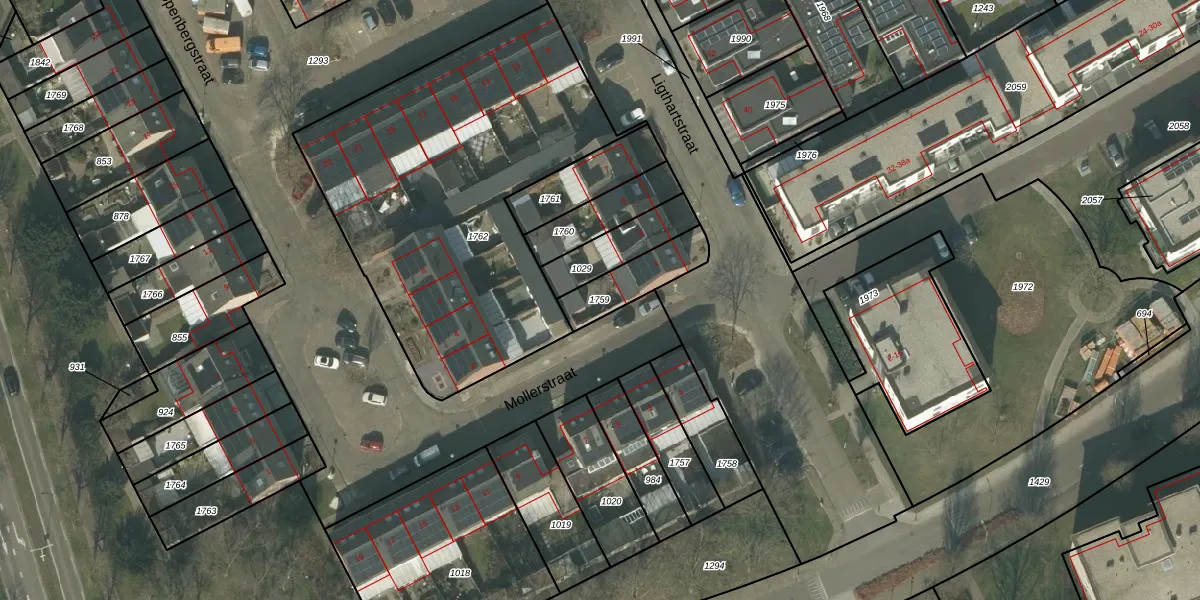 Gebruik de zoekbalk of klik op een perceel om informatie over het perceel te bekijken.
