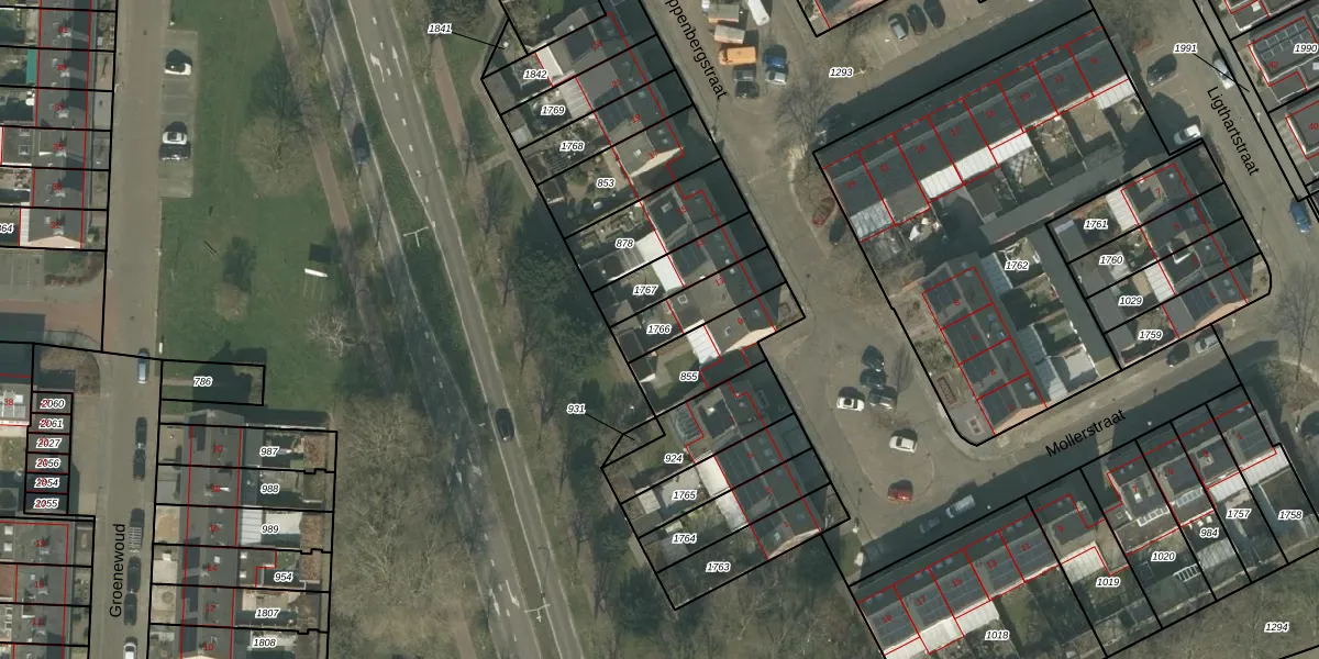 Gebruik de zoekbalk of klik op een perceel om informatie over het perceel te bekijken.
