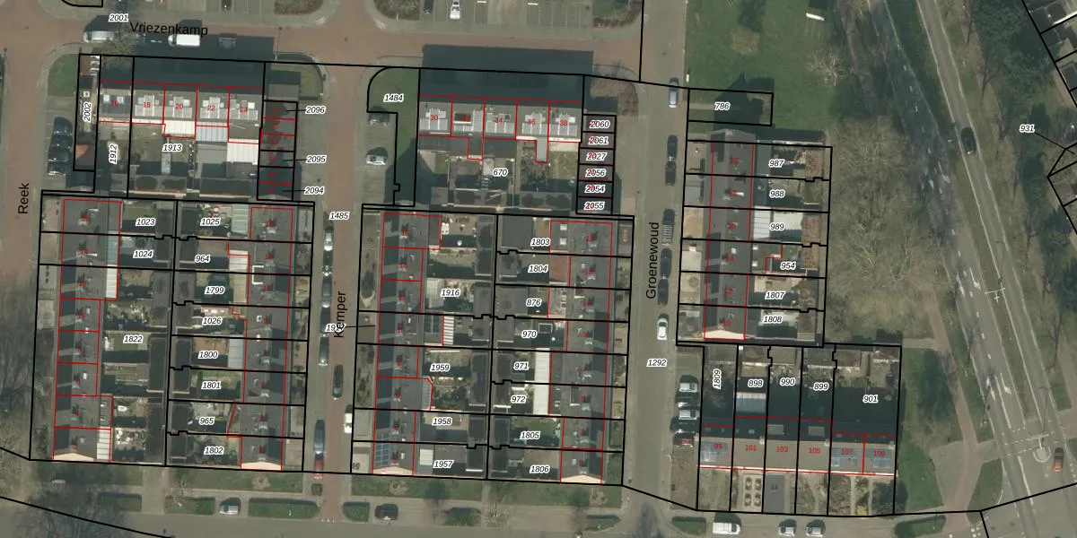 Gebruik de zoekbalk of klik op een perceel om informatie over het perceel te bekijken.