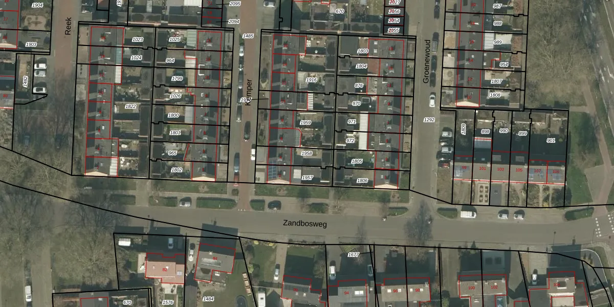 Gebruik de zoekbalk of klik op een perceel om informatie over het perceel te bekijken.
