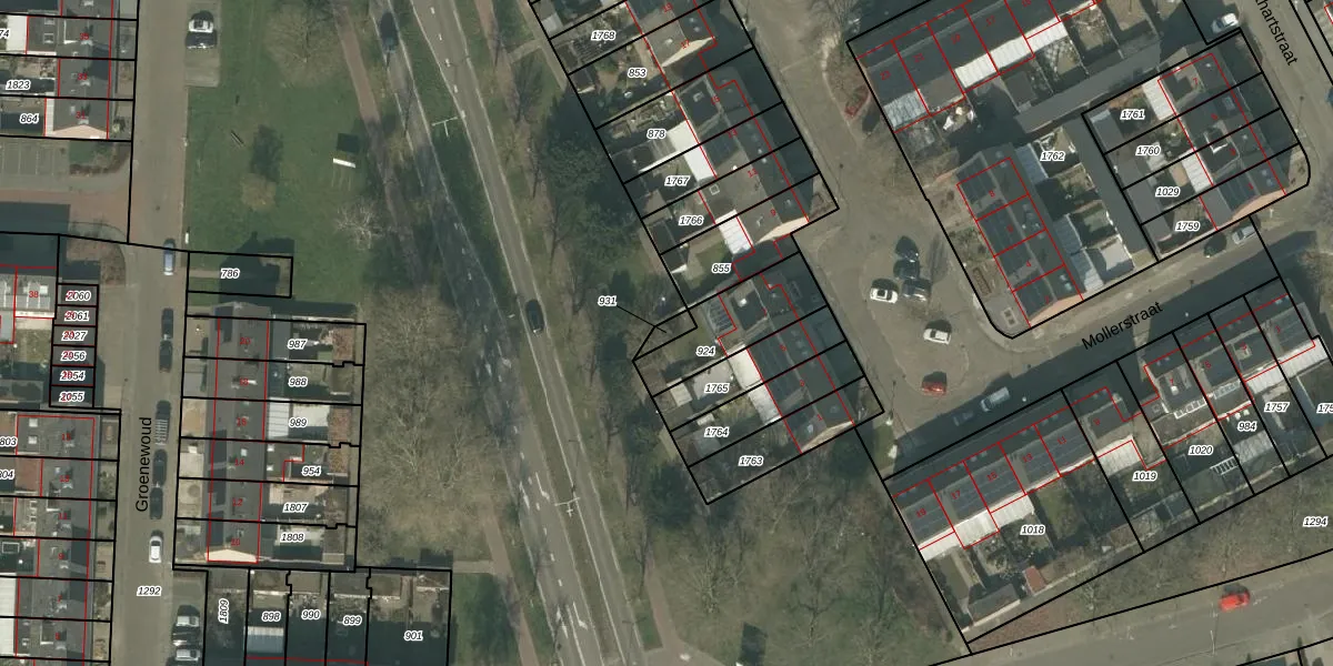 Gebruik de zoekbalk of klik op een perceel om informatie over het perceel te bekijken.