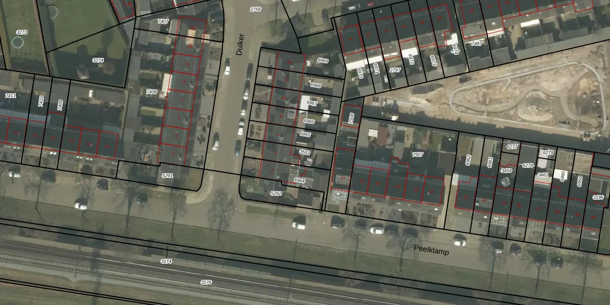 Gebruik de zoekbalk of klik op een perceel om informatie over het perceel te bekijken.