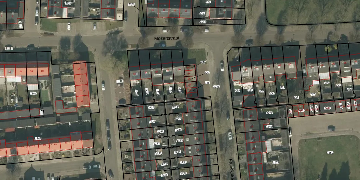 Gebruik de zoekbalk of klik op een perceel om informatie over het perceel te bekijken.