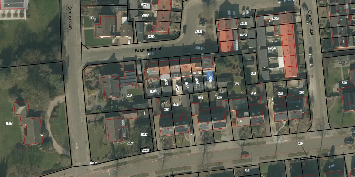 Gebruik de zoekbalk of klik op een perceel om informatie over het perceel te bekijken.