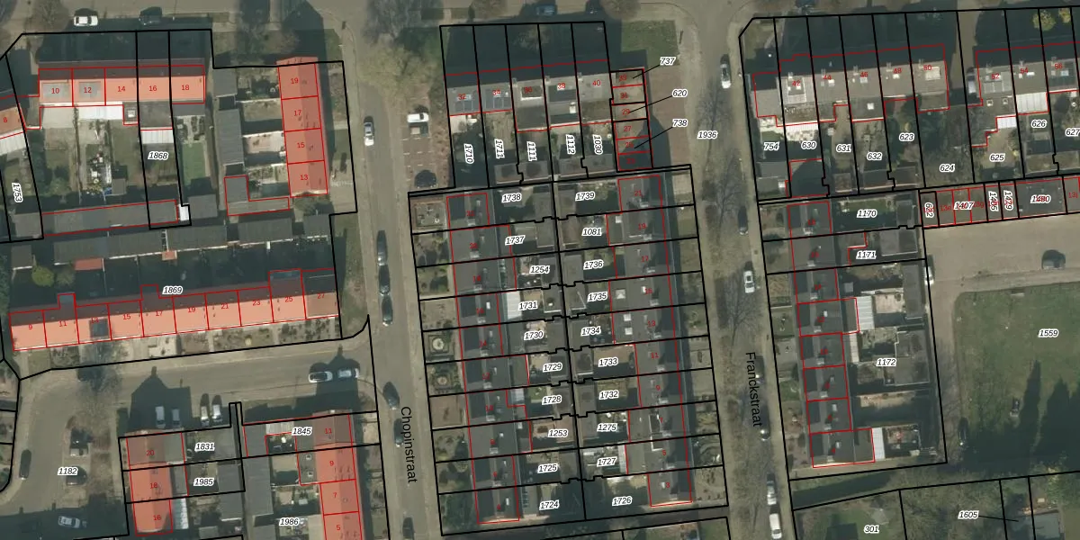 Gebruik de zoekbalk of klik op een perceel om informatie over het perceel te bekijken.