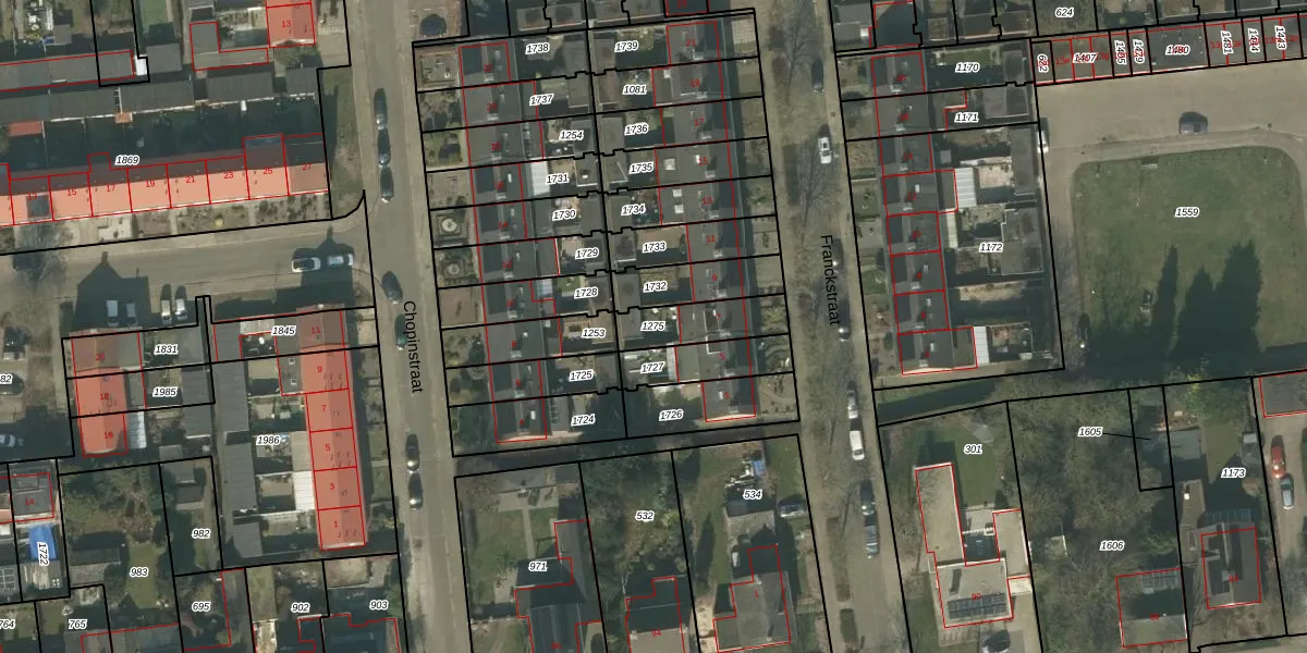Gebruik de zoekbalk of klik op een perceel om informatie over het perceel te bekijken.