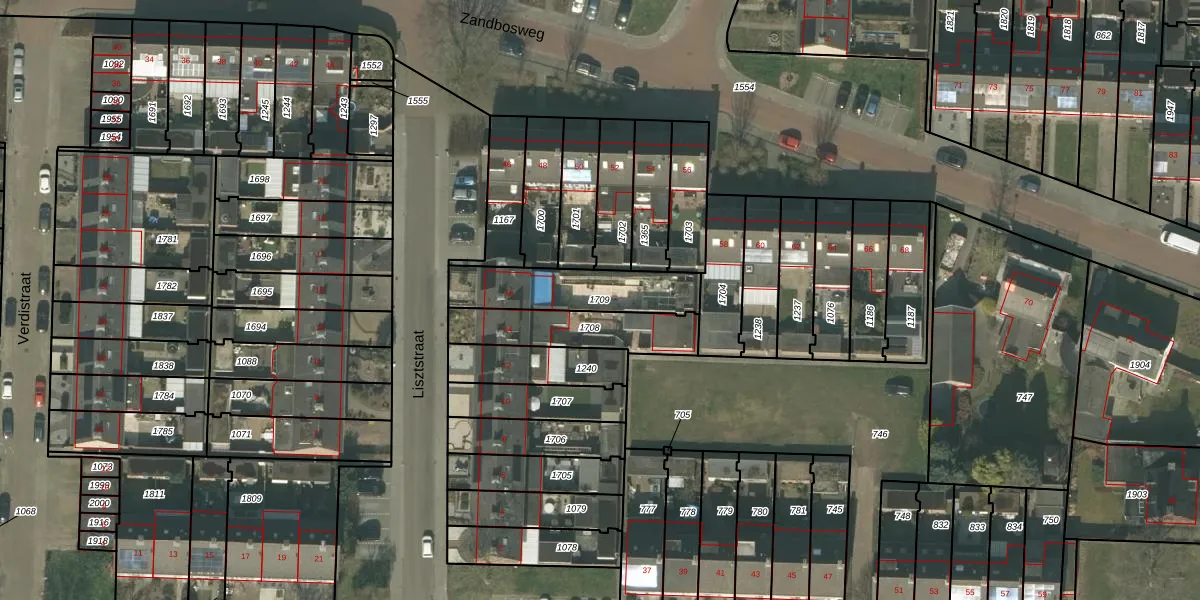 Gebruik de zoekbalk of klik op een perceel om informatie over het perceel te bekijken.