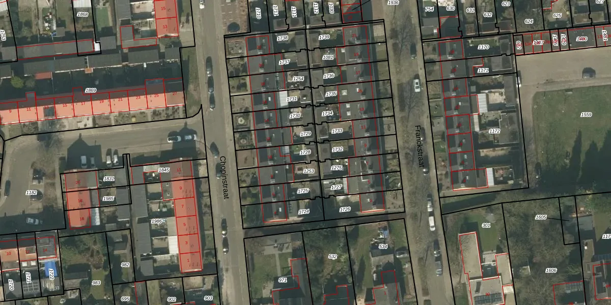 Gebruik de zoekbalk of klik op een perceel om informatie over het perceel te bekijken.