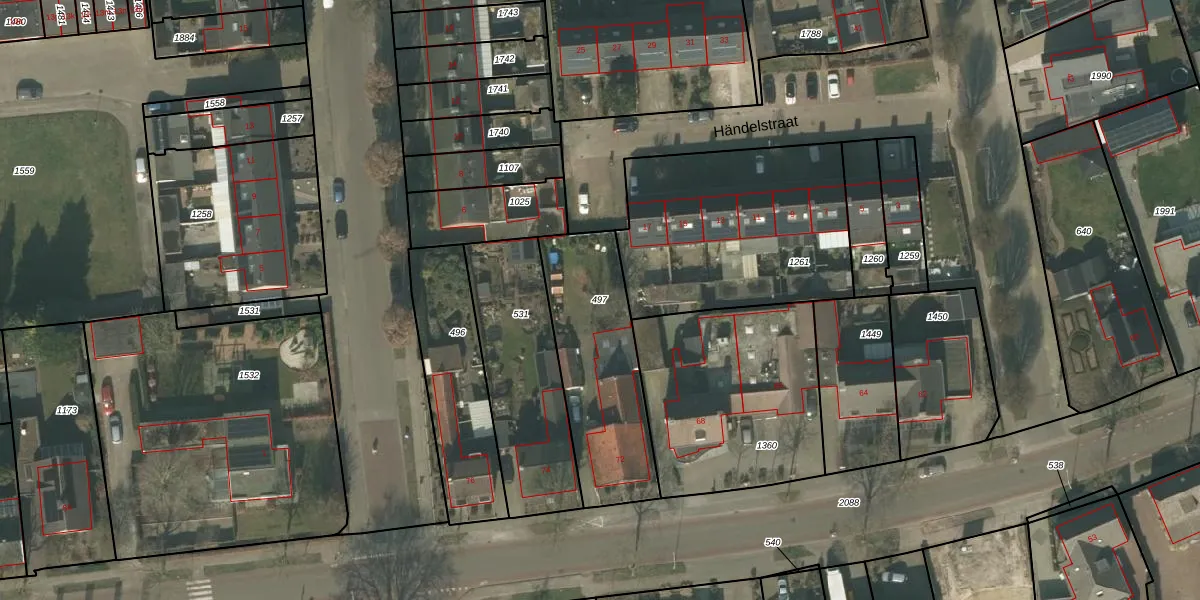 Gebruik de zoekbalk of klik op een perceel om informatie over het perceel te bekijken.