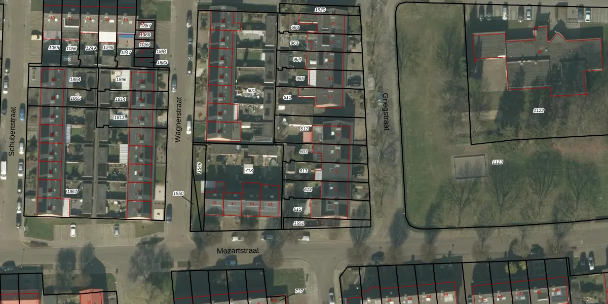 Gebruik de zoekbalk of klik op een perceel om informatie over het perceel te bekijken.