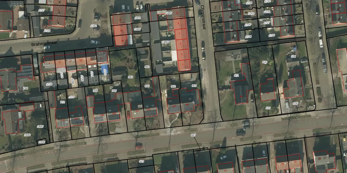 Gebruik de zoekbalk of klik op een perceel om informatie over het perceel te bekijken.