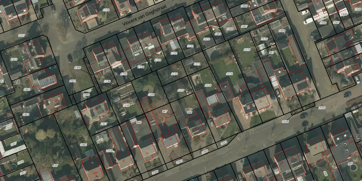 Gebruik de zoekbalk of klik op een perceel om informatie over het perceel te bekijken.