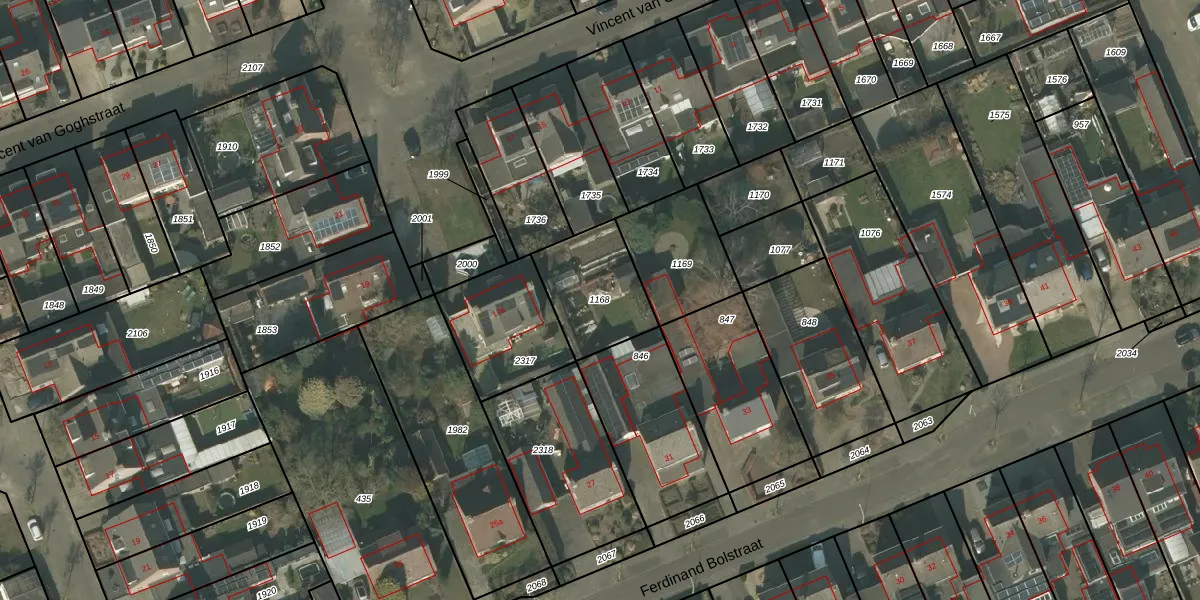 Gebruik de zoekbalk of klik op een perceel om informatie over het perceel te bekijken.