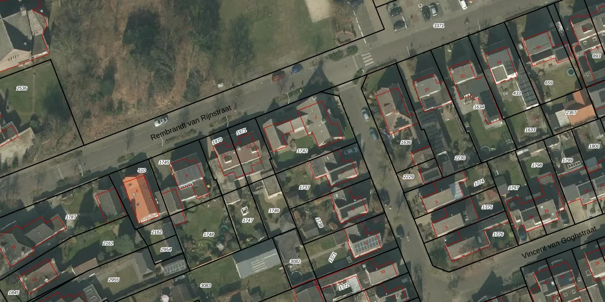Gebruik de zoekbalk of klik op een perceel om informatie over het perceel te bekijken.