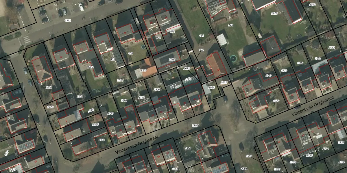 Gebruik de zoekbalk of klik op een perceel om informatie over het perceel te bekijken.