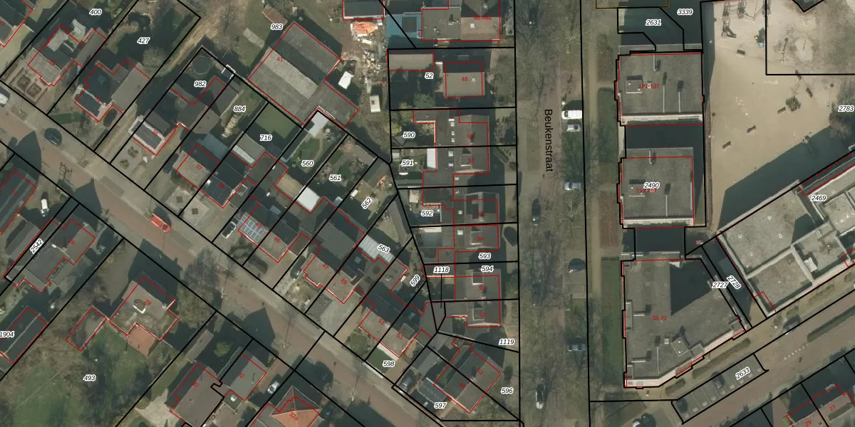 Gebruik de zoekbalk of klik op een perceel om informatie over het perceel te bekijken.