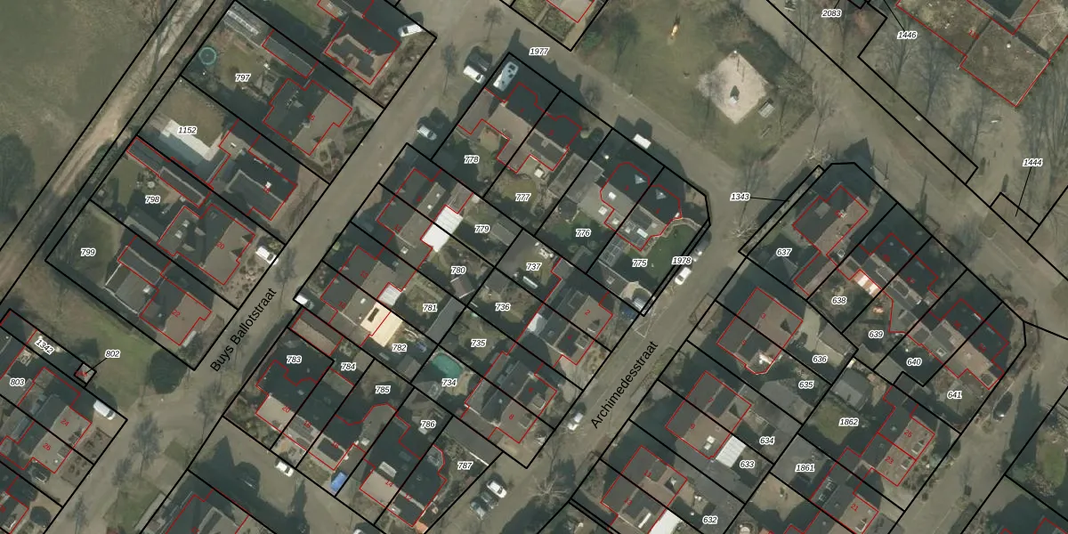 Gebruik de zoekbalk of klik op een perceel om informatie over het perceel te bekijken.