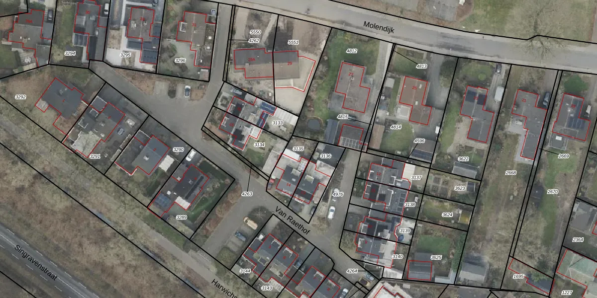 Gebruik de zoekbalk of klik op een perceel om informatie over het perceel te bekijken.