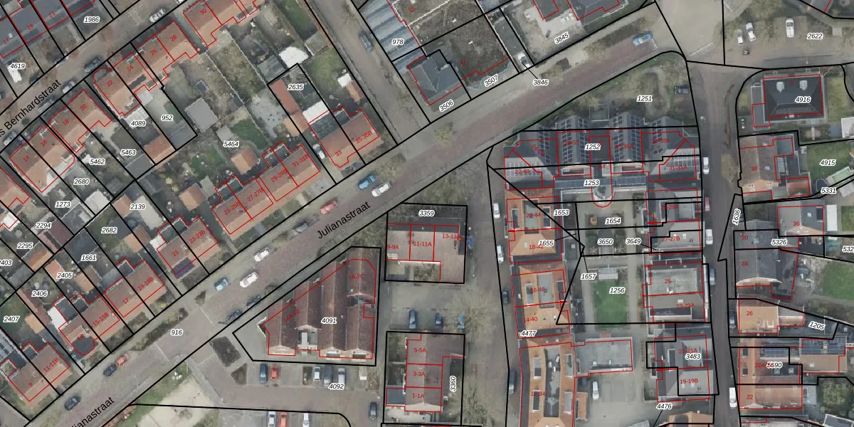 Gebruik de zoekbalk of klik op een perceel om informatie over het perceel te bekijken.