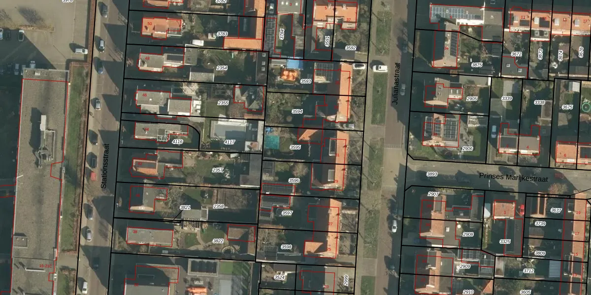 Gebruik de zoekbalk of klik op een perceel om informatie over het perceel te bekijken.