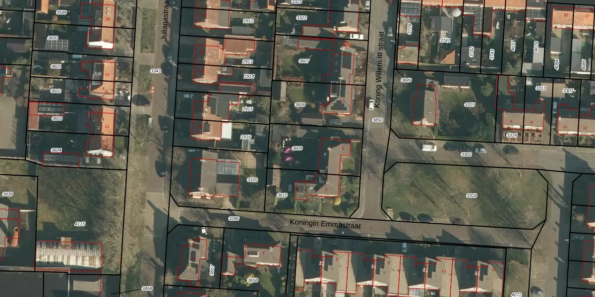 Gebruik de zoekbalk of klik op een perceel om informatie over het perceel te bekijken.