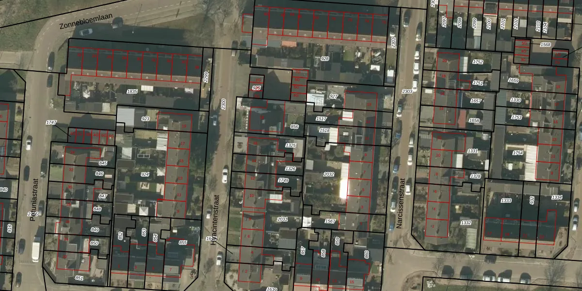Gebruik de zoekbalk of klik op een perceel om informatie over het perceel te bekijken.