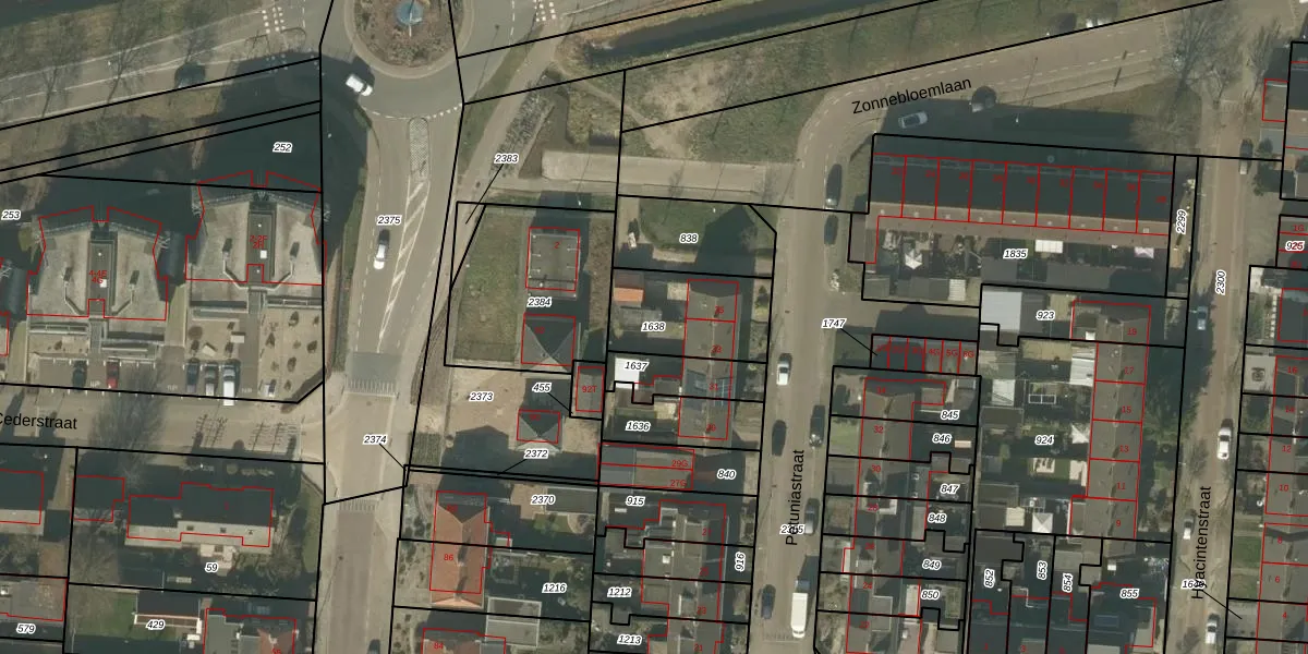 Gebruik de zoekbalk of klik op een perceel om informatie over het perceel te bekijken.
