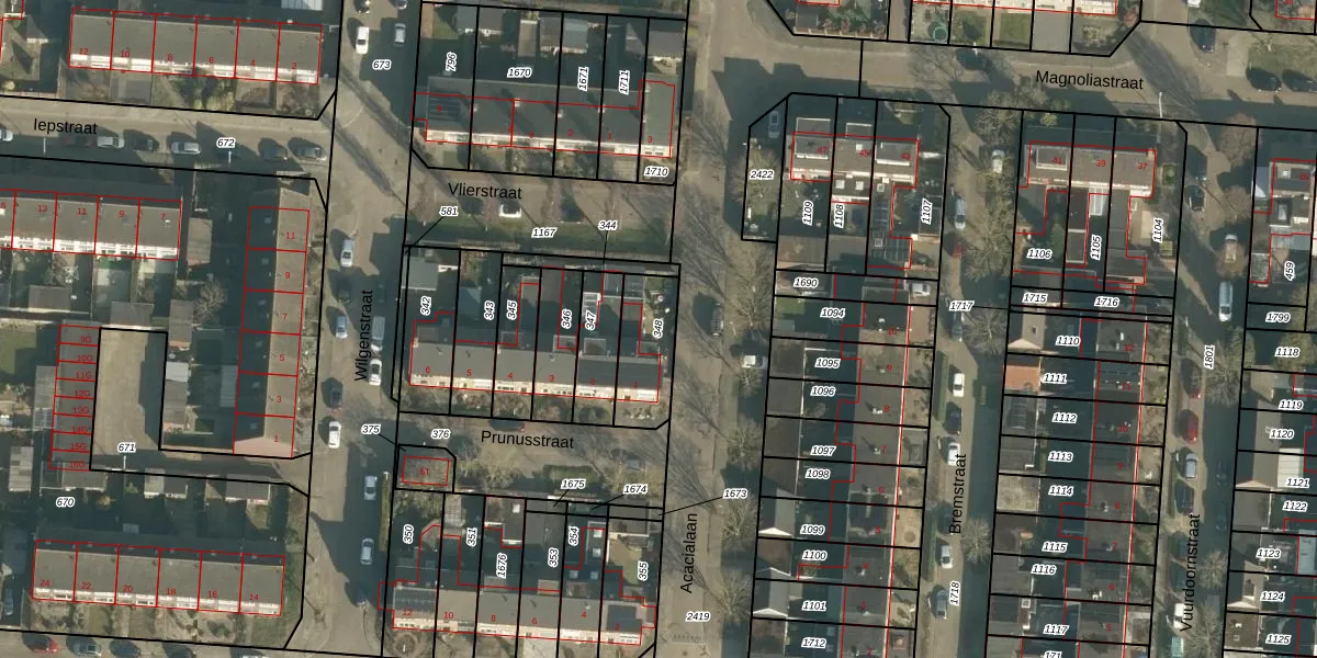 Gebruik de zoekbalk of klik op een perceel om informatie over het perceel te bekijken.
