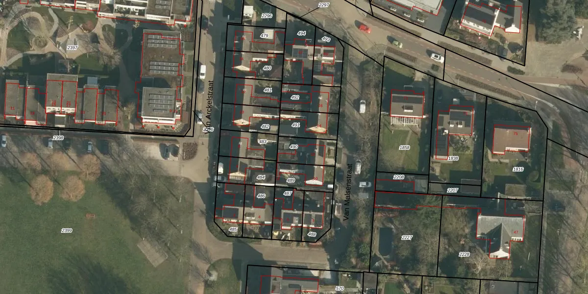 Gebruik de zoekbalk of klik op een perceel om informatie over het perceel te bekijken.