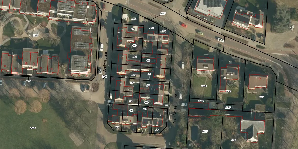 Gebruik de zoekbalk of klik op een perceel om informatie over het perceel te bekijken.