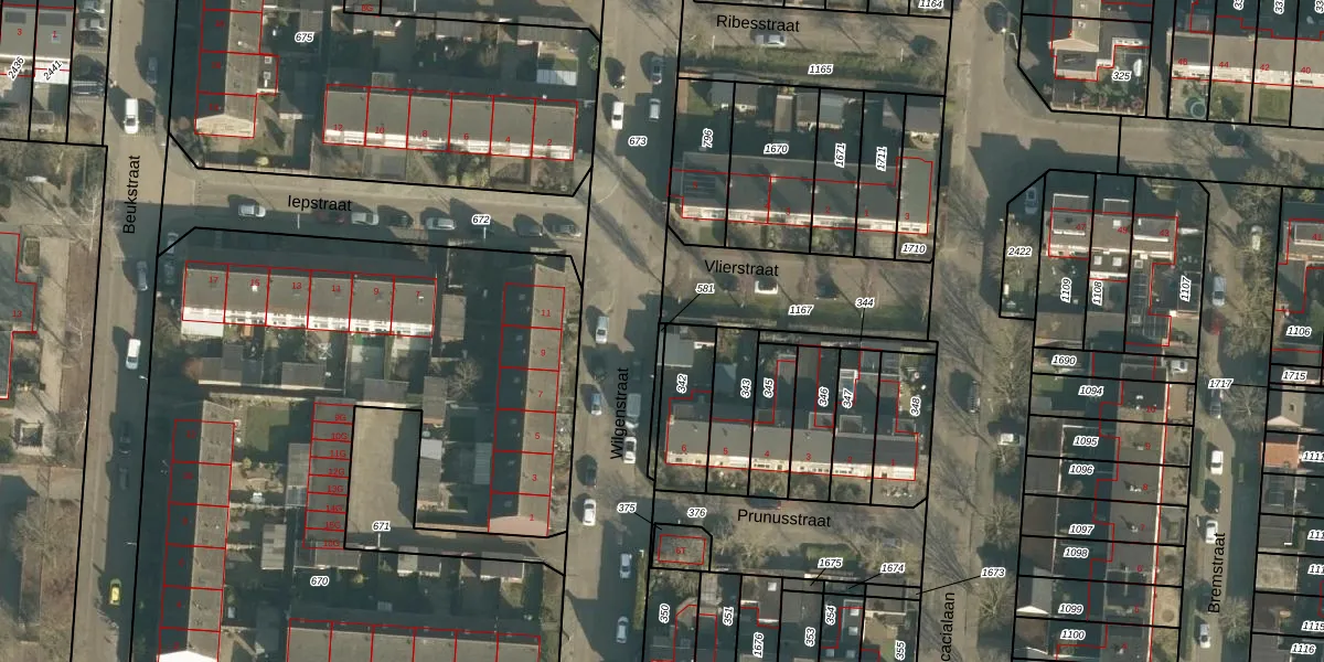 Gebruik de zoekbalk of klik op een perceel om informatie over het perceel te bekijken.