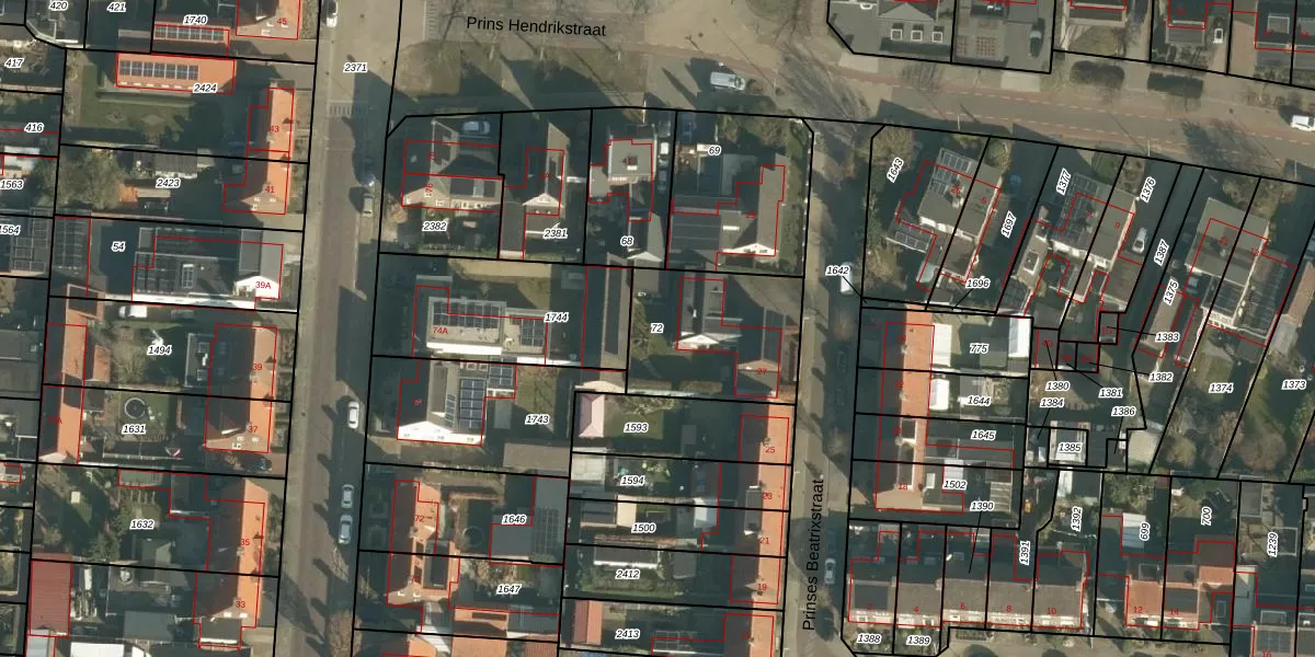 Gebruik de zoekbalk of klik op een perceel om informatie over het perceel te bekijken.