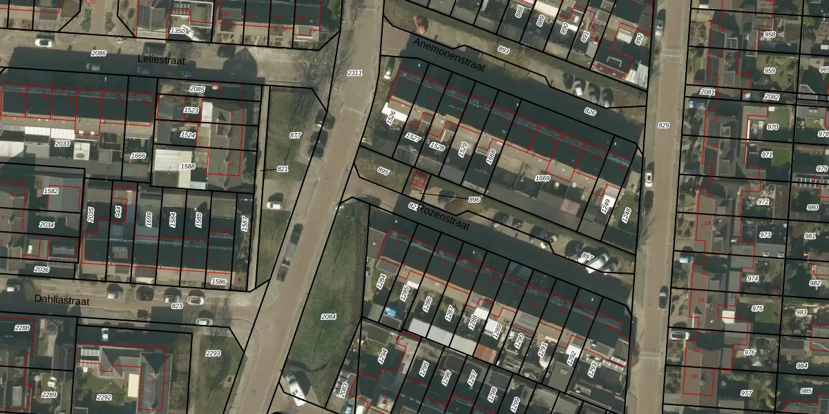 Gebruik de zoekbalk of klik op een perceel om informatie over het perceel te bekijken.