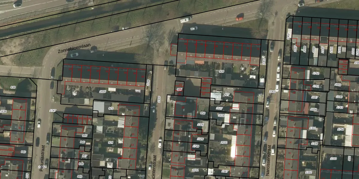 Gebruik de zoekbalk of klik op een perceel om informatie over het perceel te bekijken.