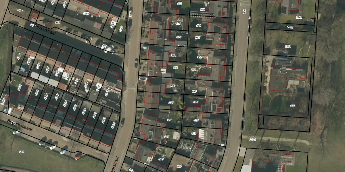 Gebruik de zoekbalk of klik op een perceel om informatie over het perceel te bekijken.