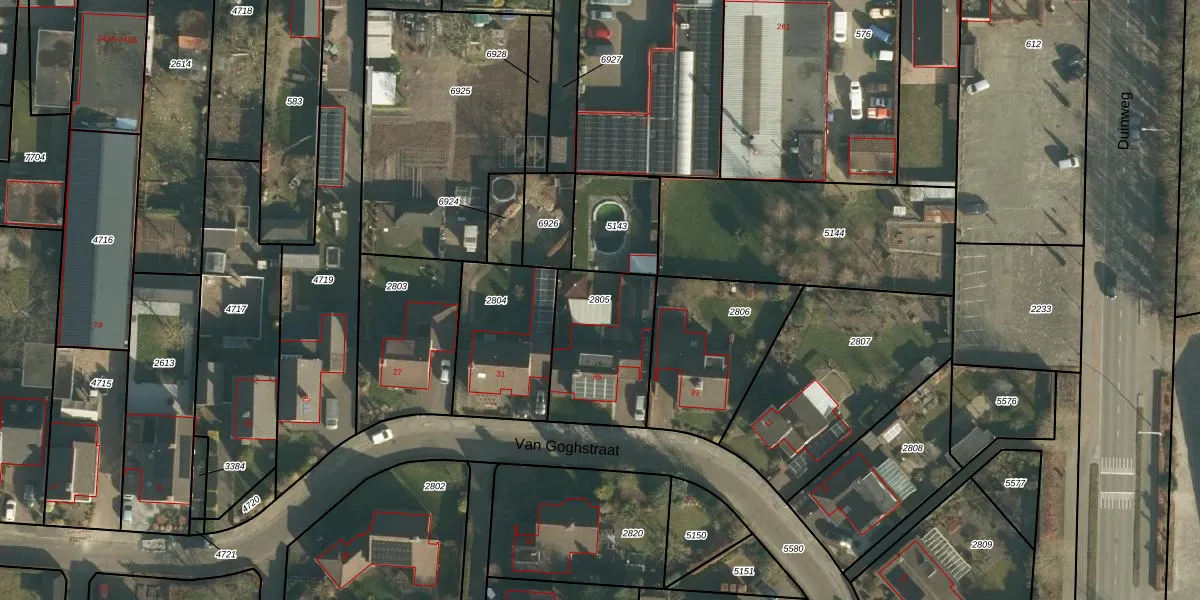 Gebruik de zoekbalk of klik op een perceel om informatie over het perceel te bekijken.