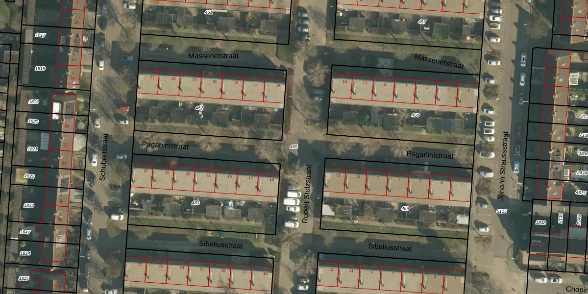 Gebruik de zoekbalk of klik op een perceel om informatie over het perceel te bekijken.