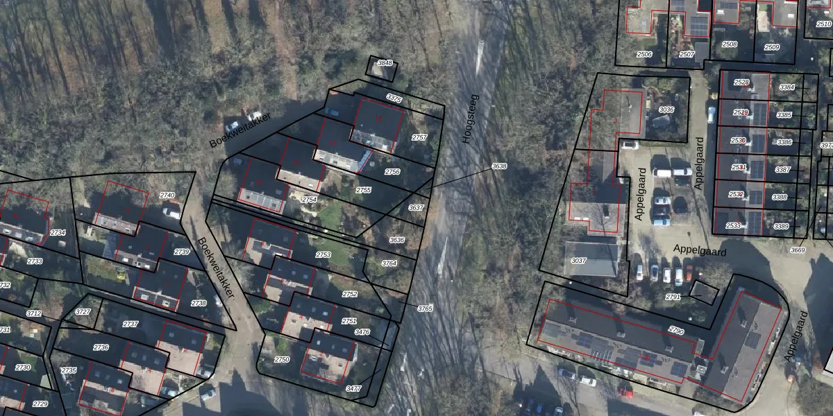 Gebruik de zoekbalk of klik op een perceel om informatie over het perceel te bekijken.