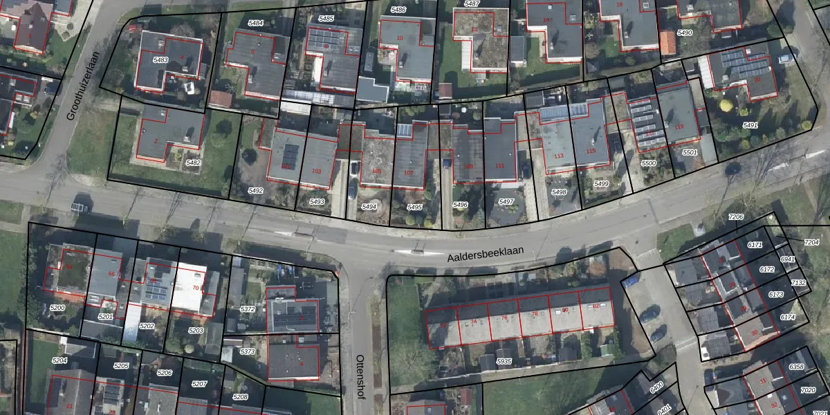 Gebruik de zoekbalk of klik op een perceel om informatie over het perceel te bekijken.