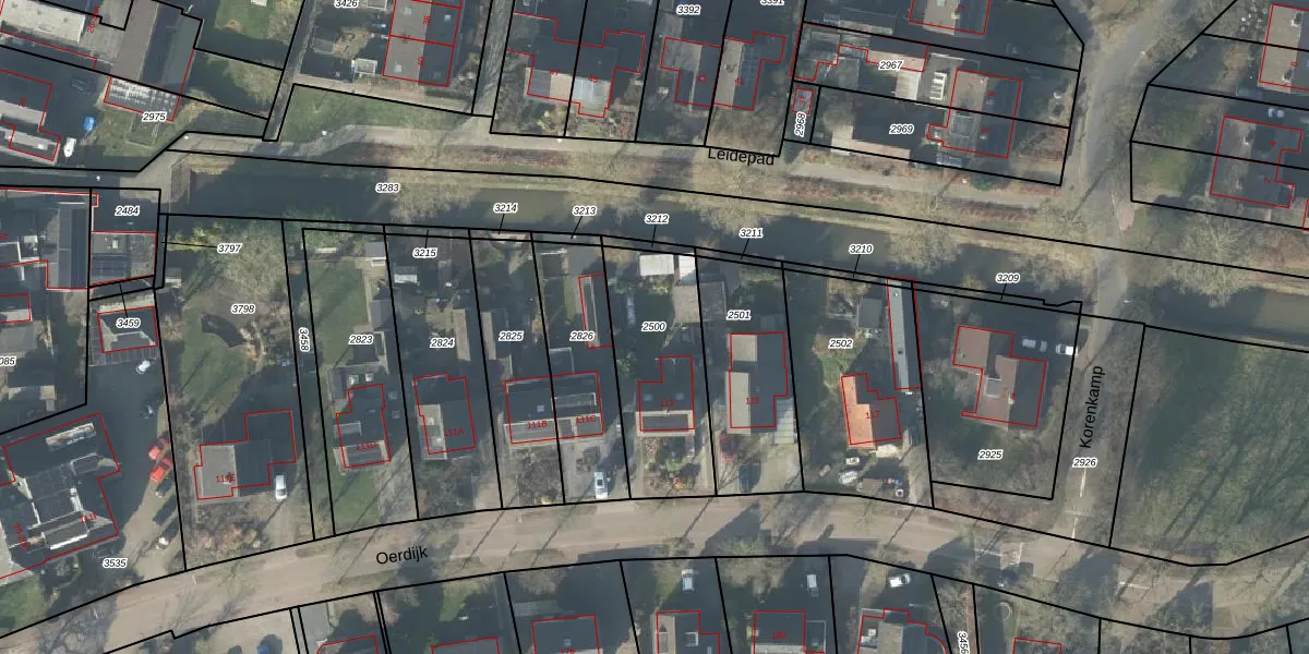 Gebruik de zoekbalk of klik op een perceel om informatie over het perceel te bekijken.