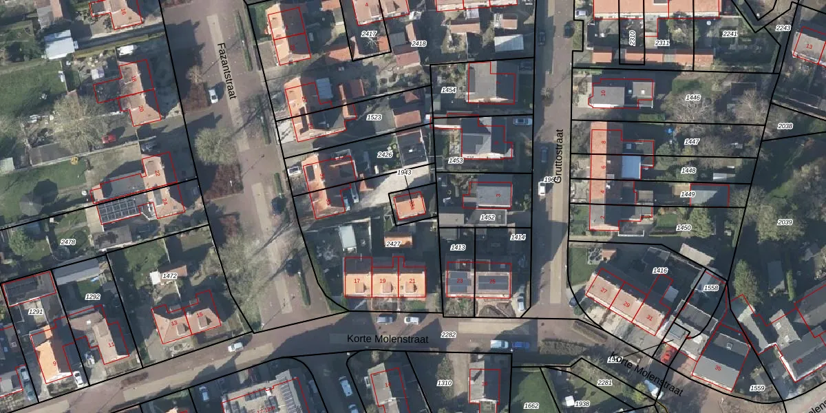 Gebruik de zoekbalk of klik op een perceel om informatie over het perceel te bekijken.