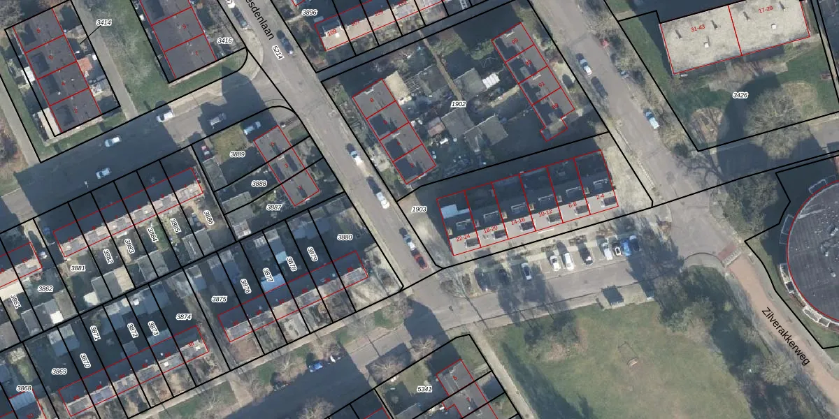 Gebruik de zoekbalk of klik op een perceel om informatie over het perceel te bekijken.