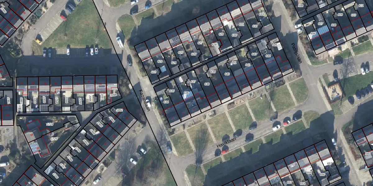 Gebruik de zoekbalk of klik op een perceel om informatie over het perceel te bekijken.