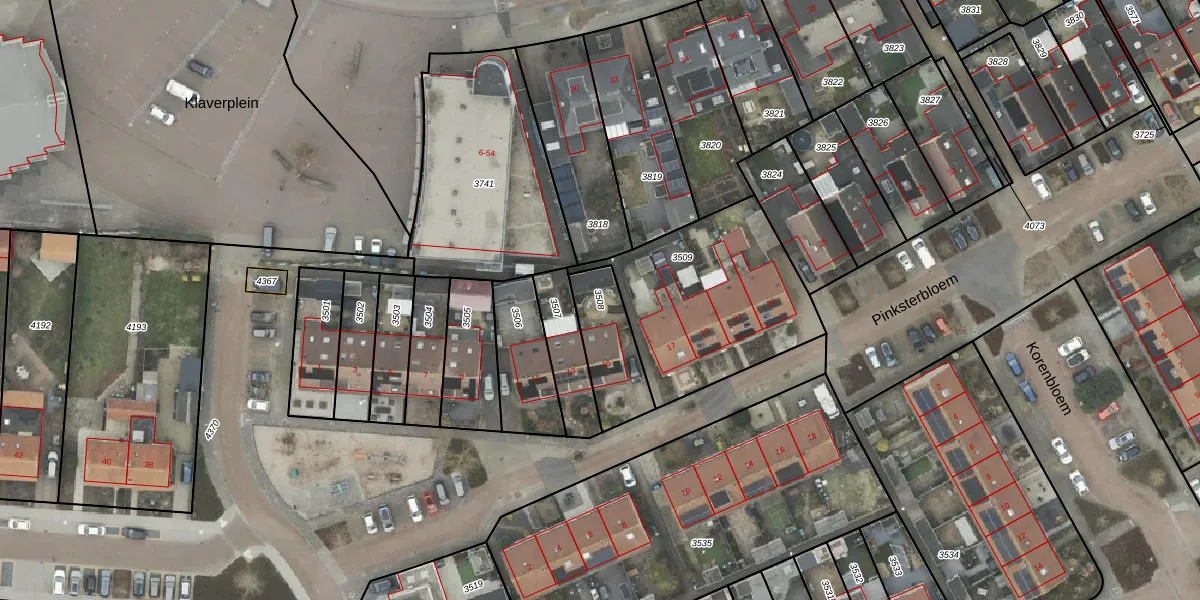 Gebruik de zoekbalk of klik op een perceel om informatie over het perceel te bekijken.