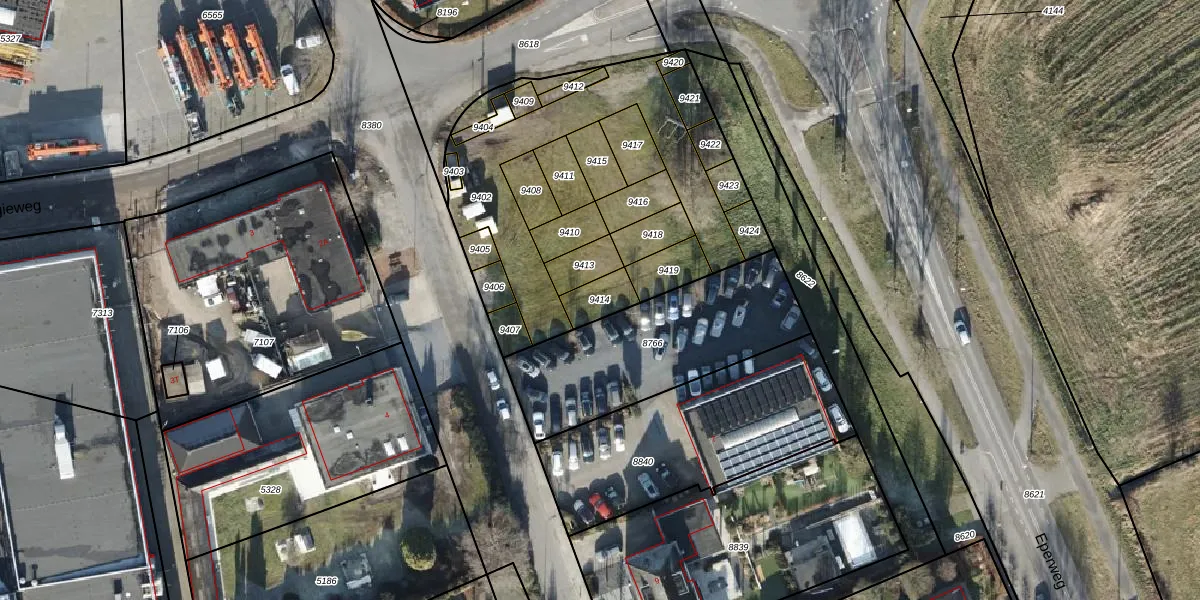 Gebruik de zoekbalk of klik op een perceel om informatie over het perceel te bekijken.
